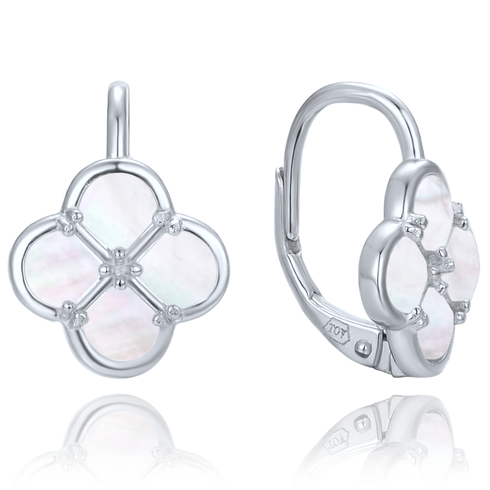 MINET Stříbrné náušnice čtyřlístky s bílou perletí