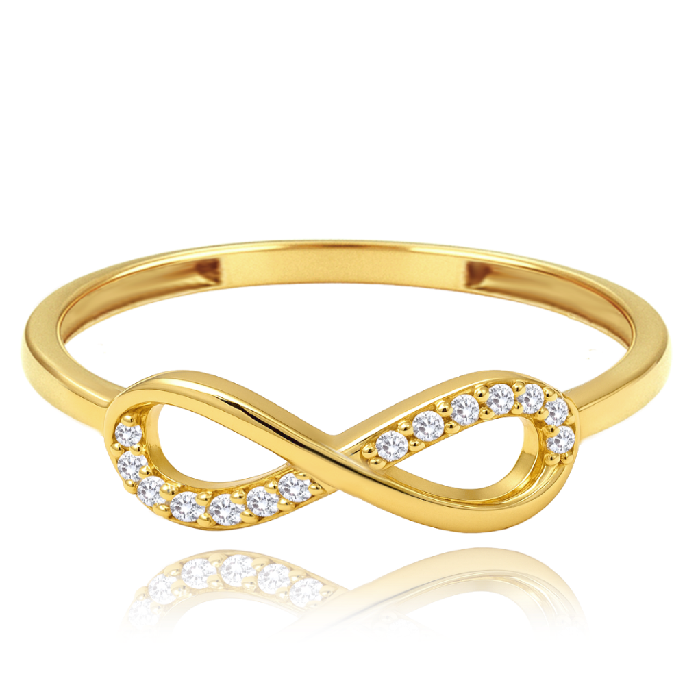MINET Elegantní zlatý prsten nekonečno s bílými zirkony Au 585/1000 vel. 53 - 0,90g