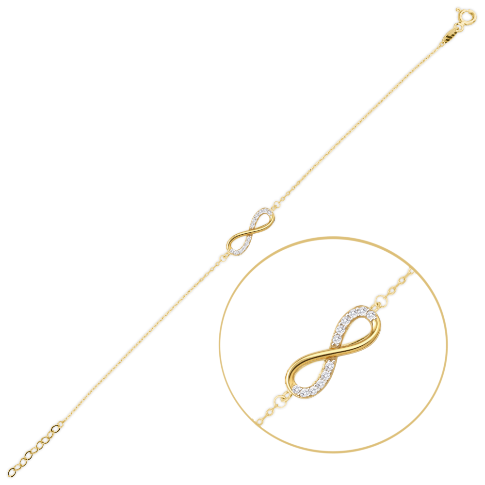 MINET Elegantní zlatý náramek nekonečno s bílými zirkony Au 585/1000 1,15g
