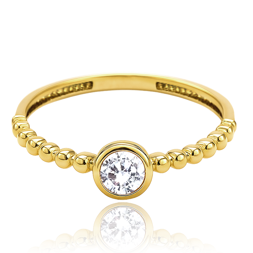 Moderní prsten z pravého 14karátového zlata s bílým zirkonem. Prsten je vhodný pro každodenní nošení i zvláštní příležitosti. Kvalitního zpracování si všimnete hned po prvním nošení.