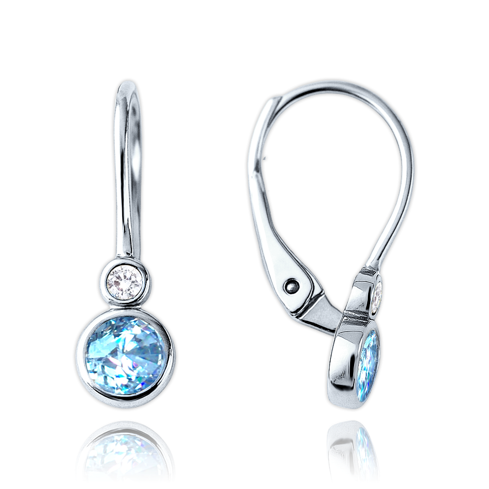 Dětské náušnice z pravého 14karátového bílého zlata. Náušnice jsou zdobené bílými a světle modrými zirkony a jsou vhodné pro každodenní nošení i výjimečné příležitosti. Kvalitního zpracování a zapínání náušnic si všimnete hned po prvním nošení.