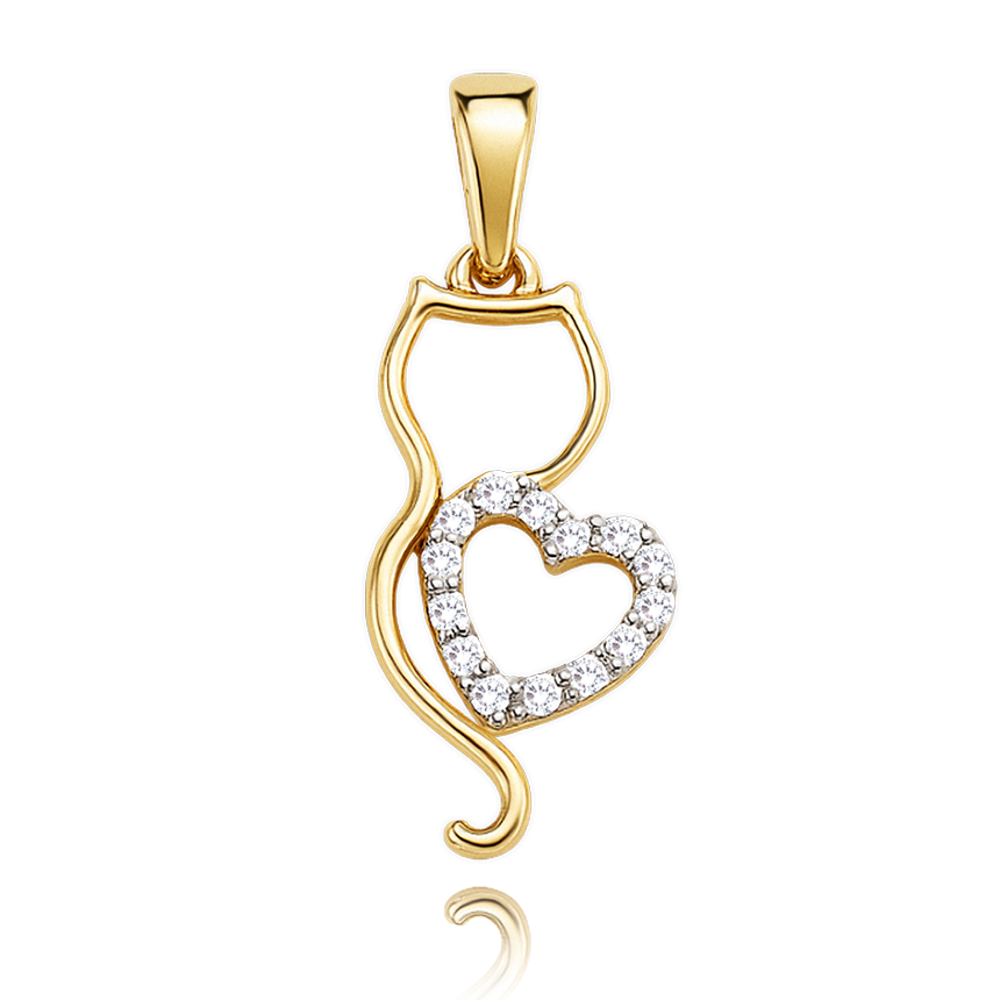 MINET Zlatý přívěs kočka se srdíčkem s bílými zirkony Au 585/1000 0,70g
