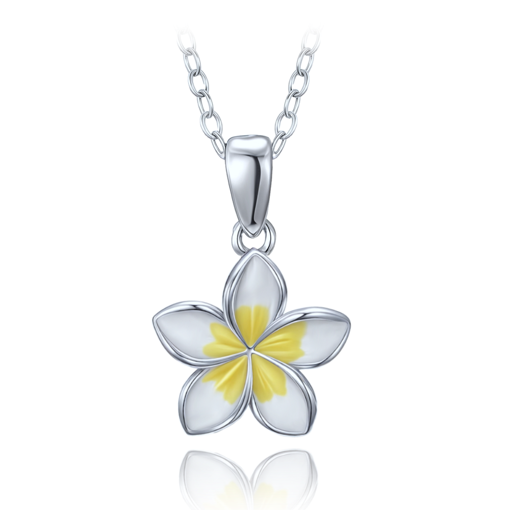 MINET Moderní stříbrný náhrdelník bílá kytička