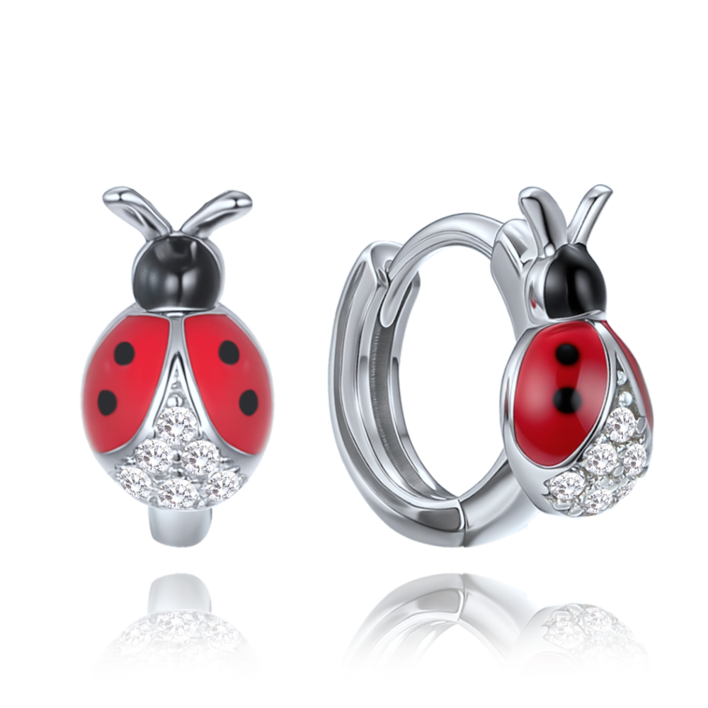 MINET Dětské stříbrné náušnice červené berušky vykládané zirkony