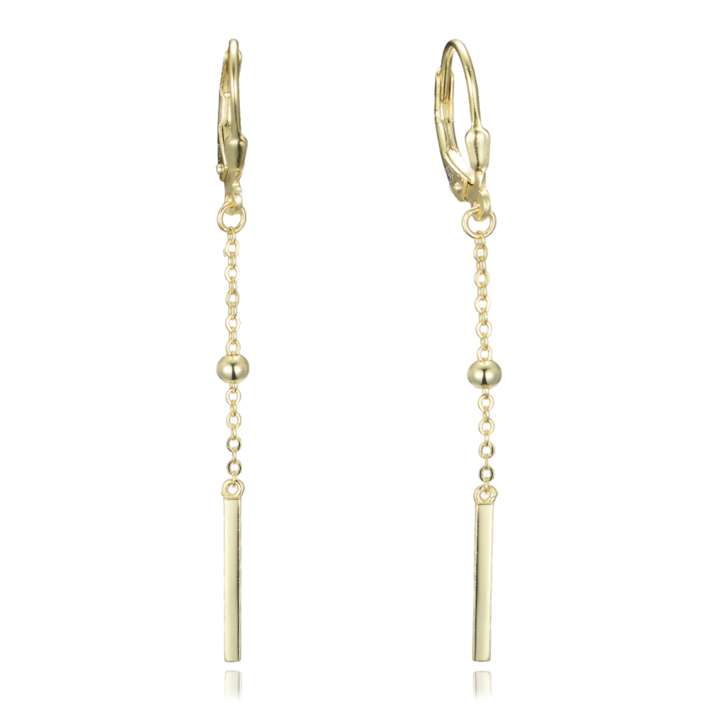 MINET Pozlacené řetízkové stříbrné visací náušnice s kuličkami a tyčkami