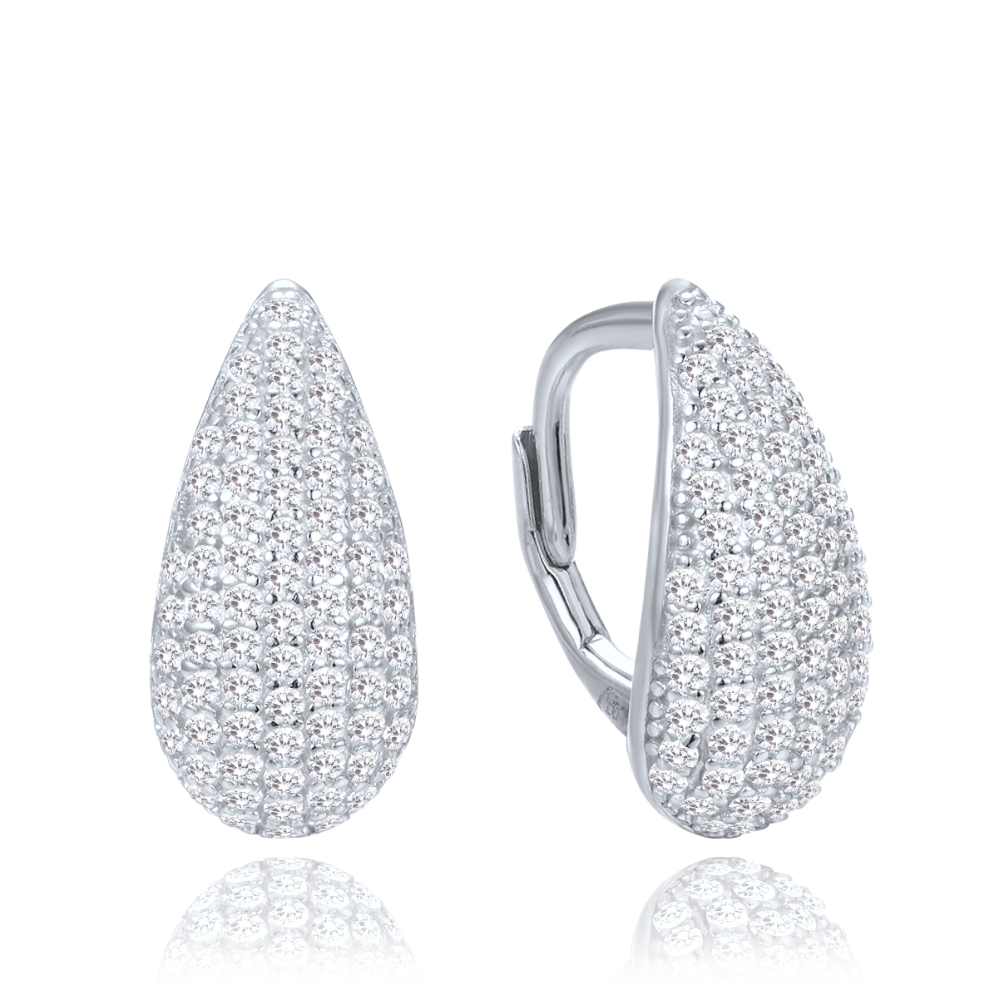 MINET Stříbrné náušnice kapky s bílými zirkony