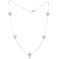 MINET Stříbrný náhrdelník čtyřlístky s bílými zirkony