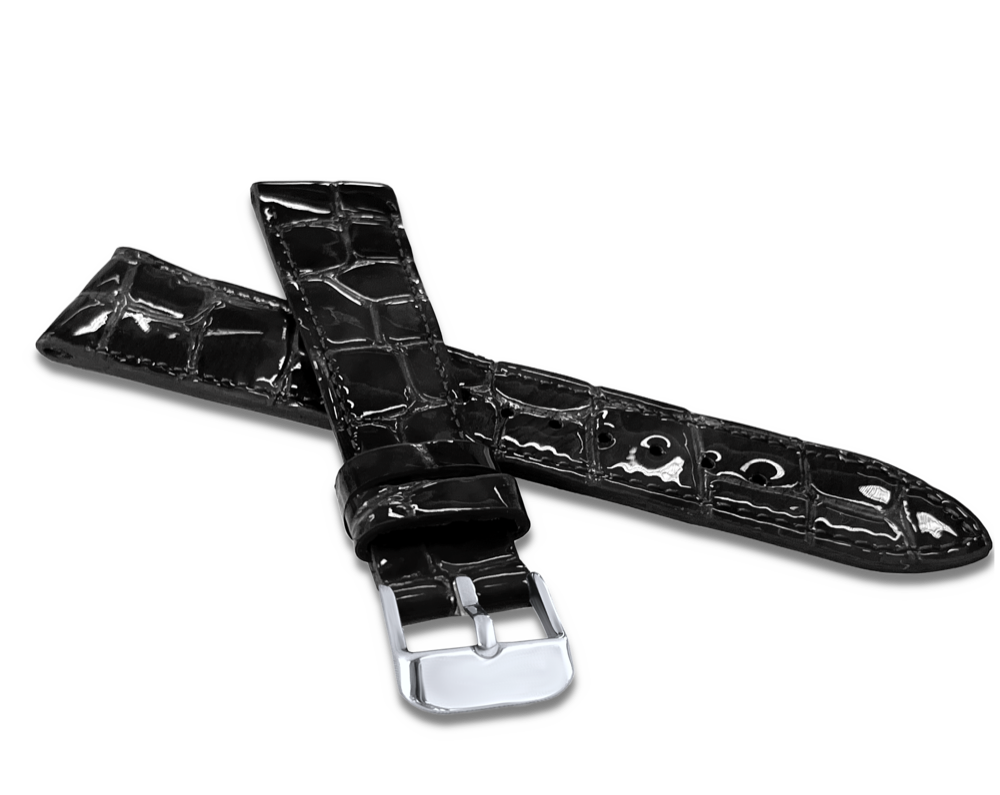 LAVVU Černý lesklý prošitý řemínek CROCO OCALA z luxusní kůže Top Grain - 20