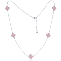 MINET Stříbrný náhrdelník čtyřlístky s jadeity