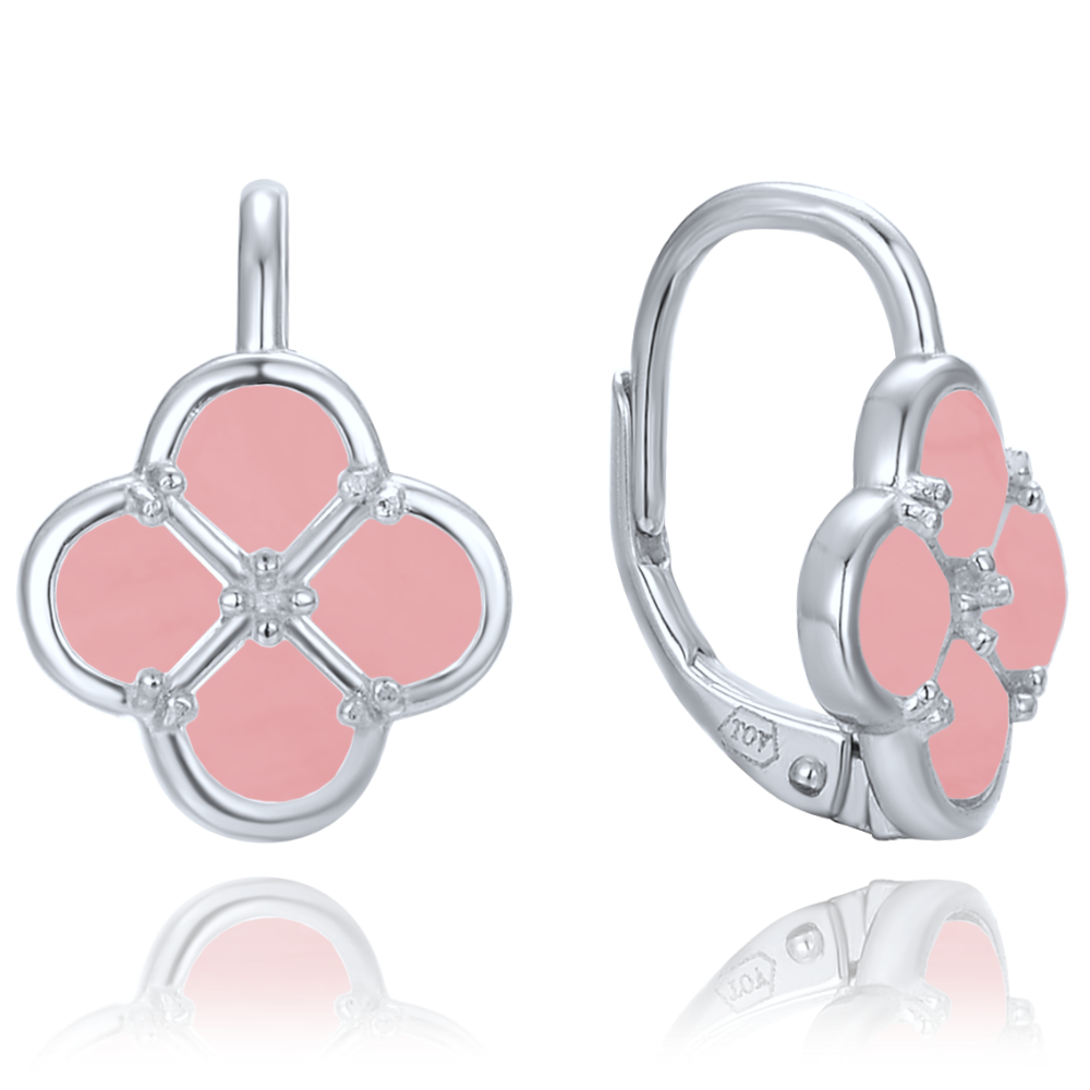 MINET Stříbrné náušnice čtyřlístky s jadeitem
