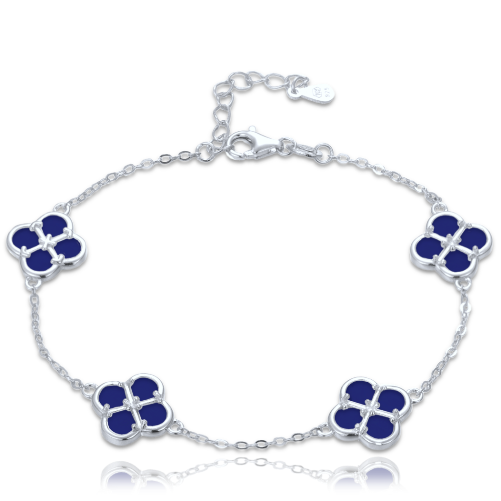 MINET Stříbrný náramek čtyřlístky s lapisy