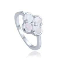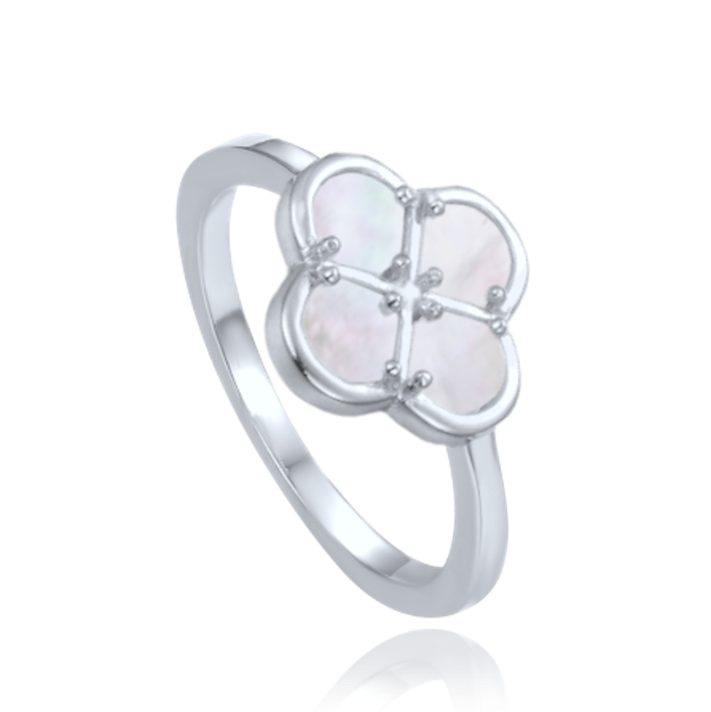 MINET Stříbrný prsten čtyřlístek s bílou perletí vel. 60