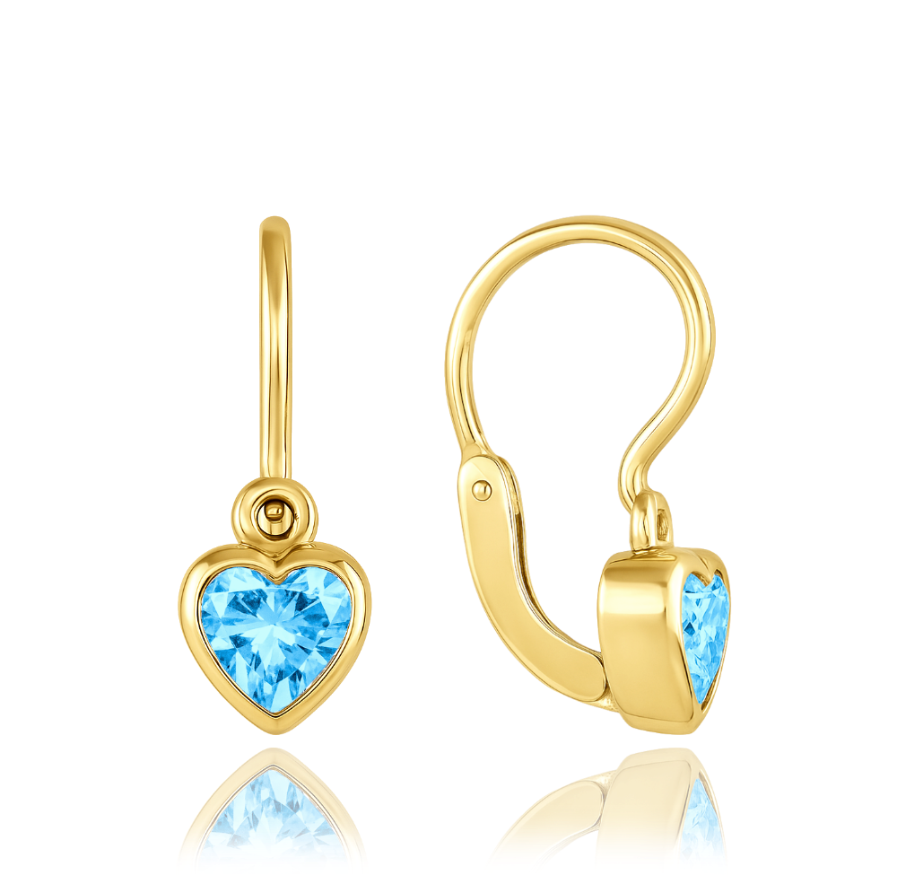 MINET Dětské náušnice s předním zapínáním srdíčka s modrými zirkony Au 585/1000 1,15g