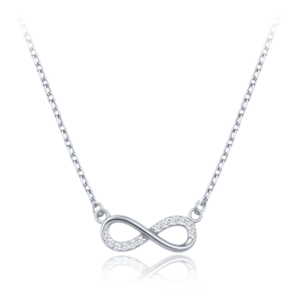 MINET Elegantní zlatý náhrdelník z bílého zlata nekonečno s bílými zirkony Au 585/1000 1,85g