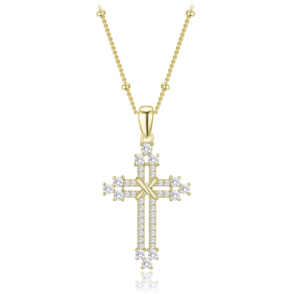 MINET Pozlacený stříbrný náhrdelník křížek se zirkony a řetízek s kuličkami