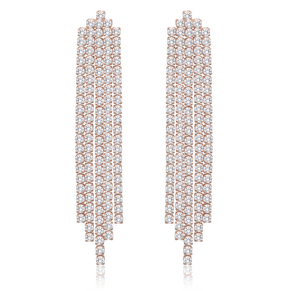 MINET Rose gold luxusní stříbrné náušnice s bílými zirkony