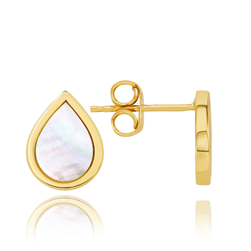 MINET Elegantní zlaté náušnice kapka s bílou perletí Au 585/1000 1,65g