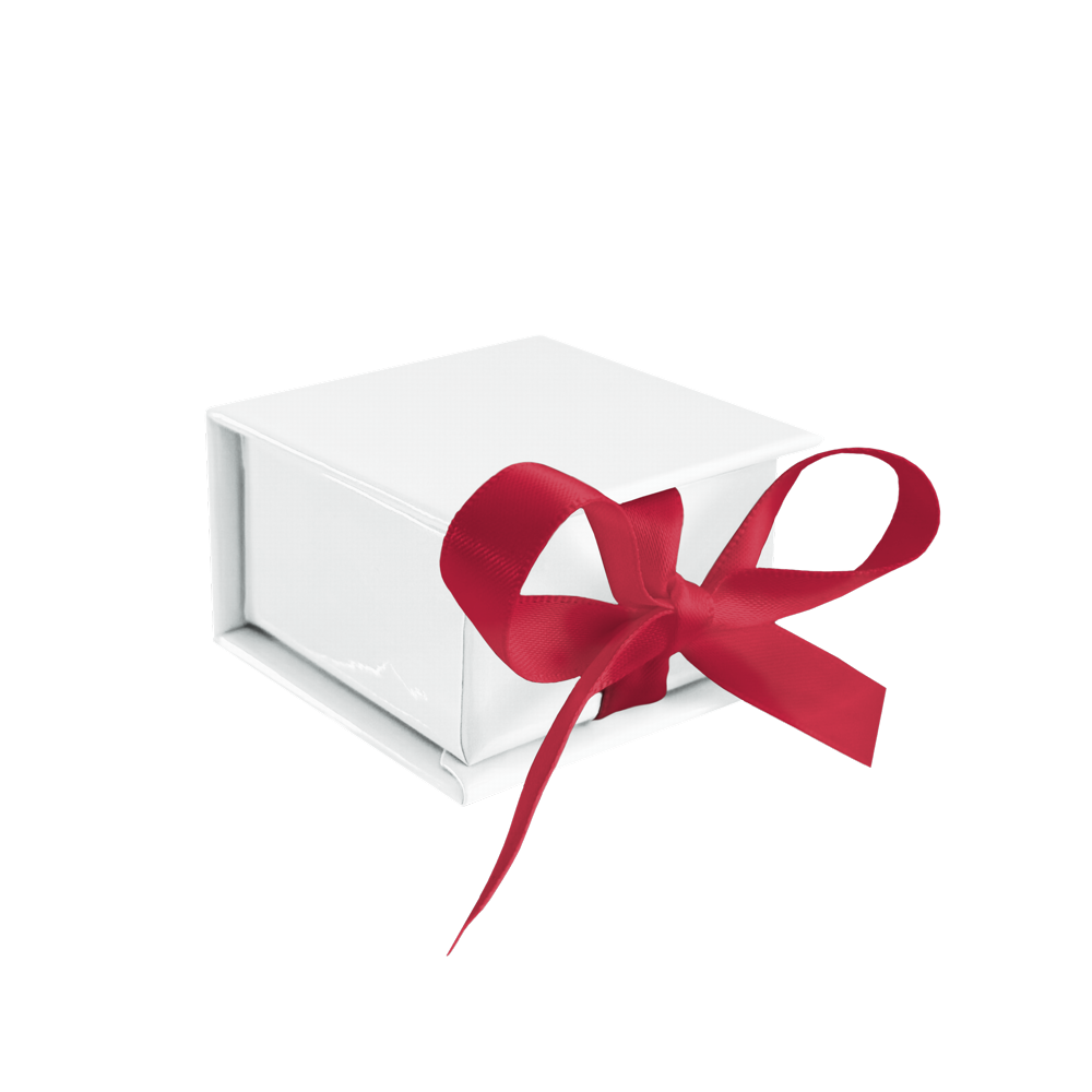 MINET Bílá magnetická krabička na šperky s tmavě růžovou stuhou - 5 x 5 x 3 cm
