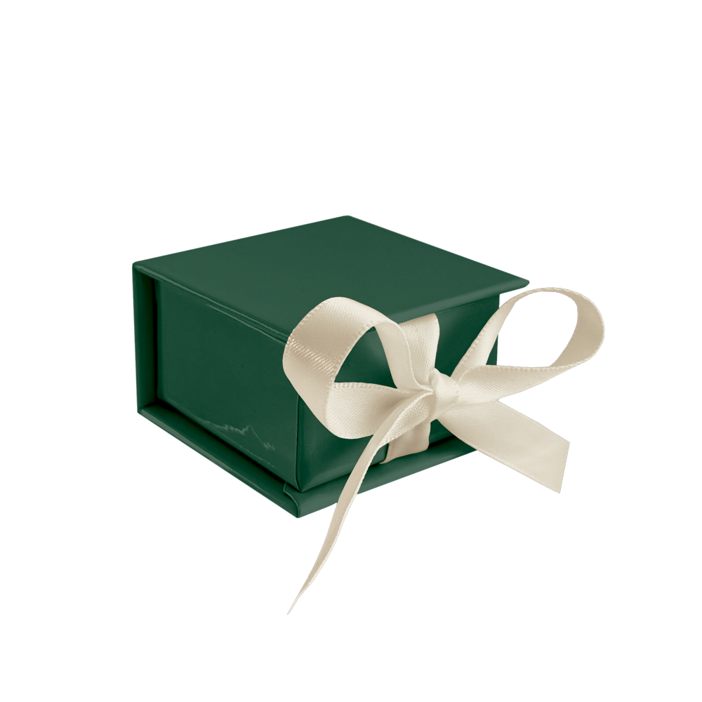 MINET Zelená magnetická krabička na šperky s béžovou stuhou - 5 x 5 x 3 cm