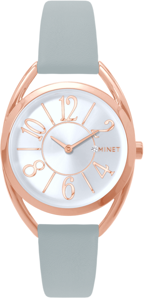 MINET Rose gold dámské hodinky s čísly ICON PINK se šedým koženým řemínkem