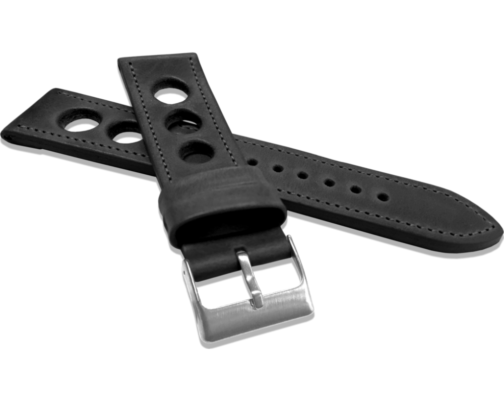 LAVVU Perforovaný černý prošitý řemínek VINTAGE z luxusní kůže Top Grain - 20