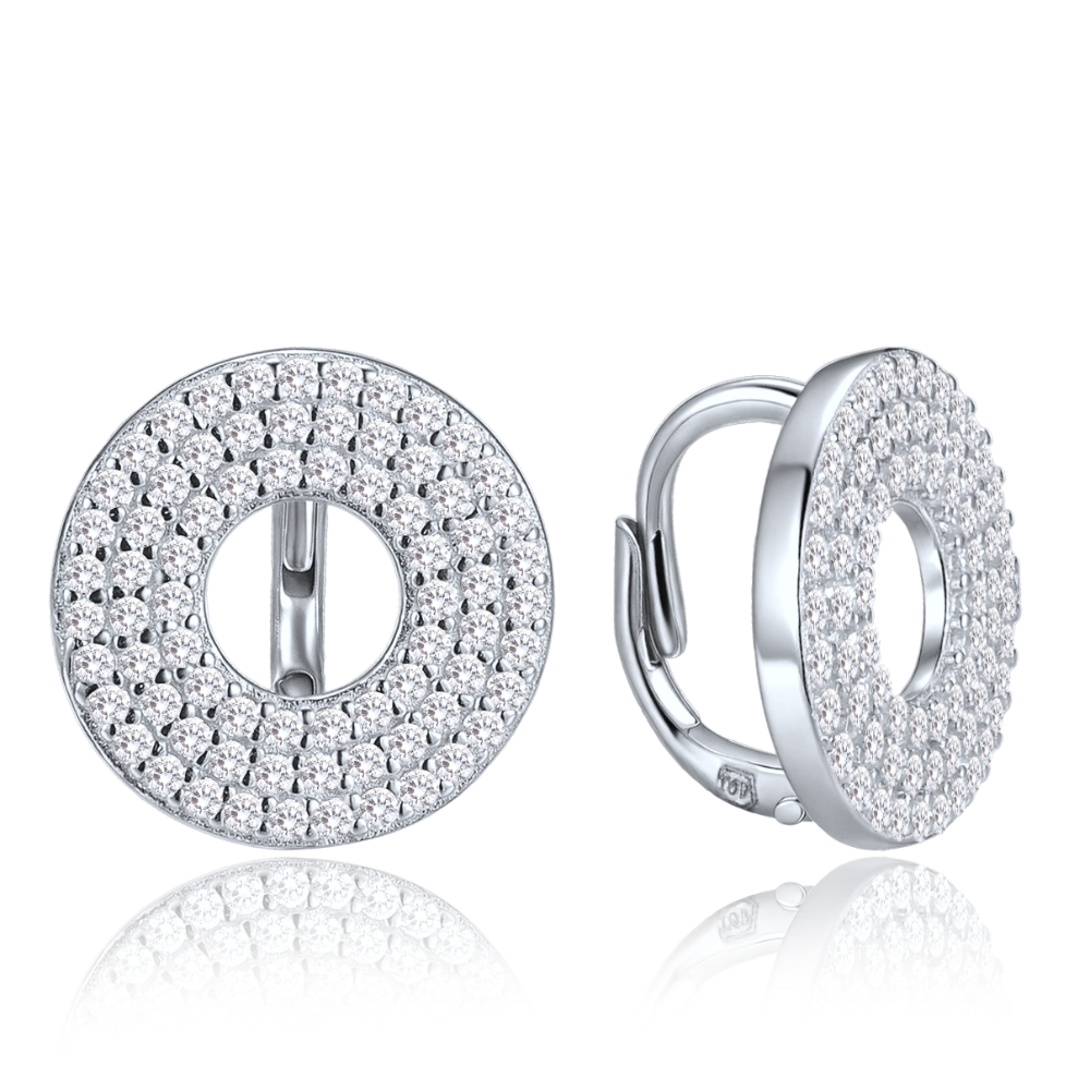 MINET Luxusní kruhové stříbrné náušnice s bílými zirkony