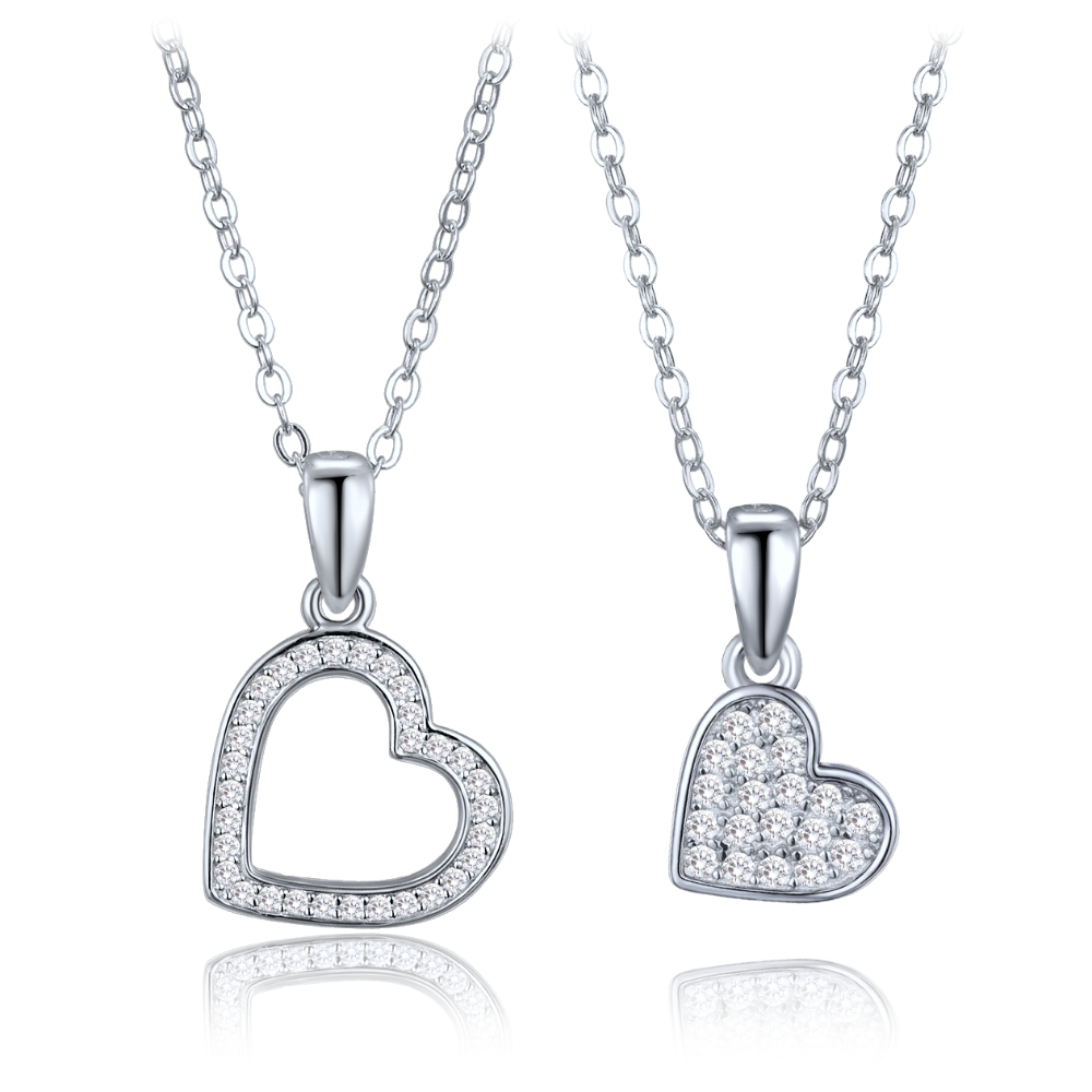 MINET Stříbrný set náhrdelníků se srdíčkem - matka a dcera