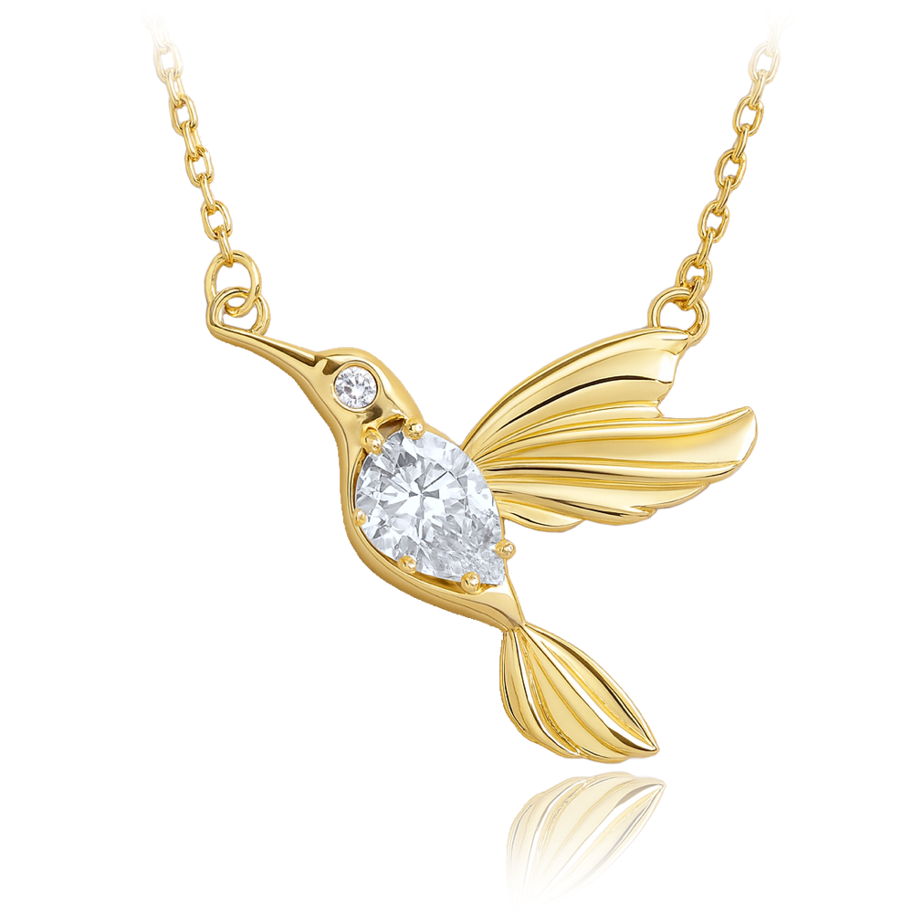 Zlatý náhrdelník s motivem kolibříka a bílým zirkonem z pravého 14karátového zlata symbolizuje lehkost a svobodu. Ideální pro ženy, které milují originální detaily. Šperky jsou opatřeny puncem potvrzujícím ryzost 585/1000. Pociťte sílu sebevědomí, které vám dodají zlaté šperky české značky MINET. Vyzdvihněte svůj osobitý styl a dopřejte si pocit výjimečnosti, díky kterému bude váš outfit dokonalý.