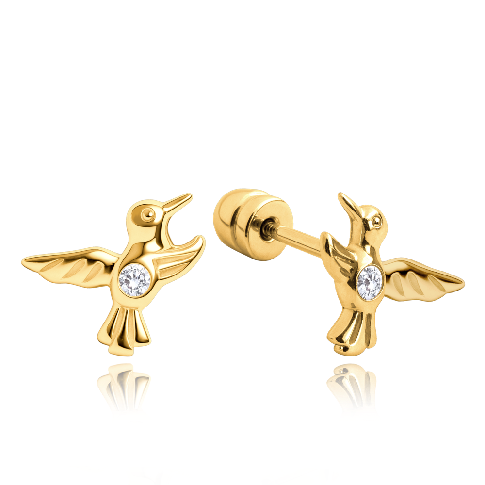 MINET Zlaté náušnice kolibříci na šroubek Au 585/1000 1,10g