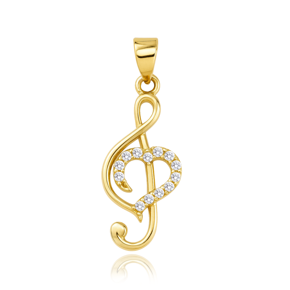 MINET Zlatý přívěs houslový klíč se srdcem a bílými zirkony Au 585/1000 0,95g