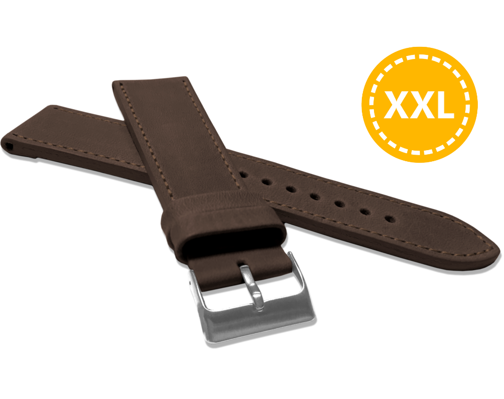 LAVVU XXL Prodloužený prošitý tmavě hnědý řemínek SPORT z luxusní kůže Top Grain - 18 XXL