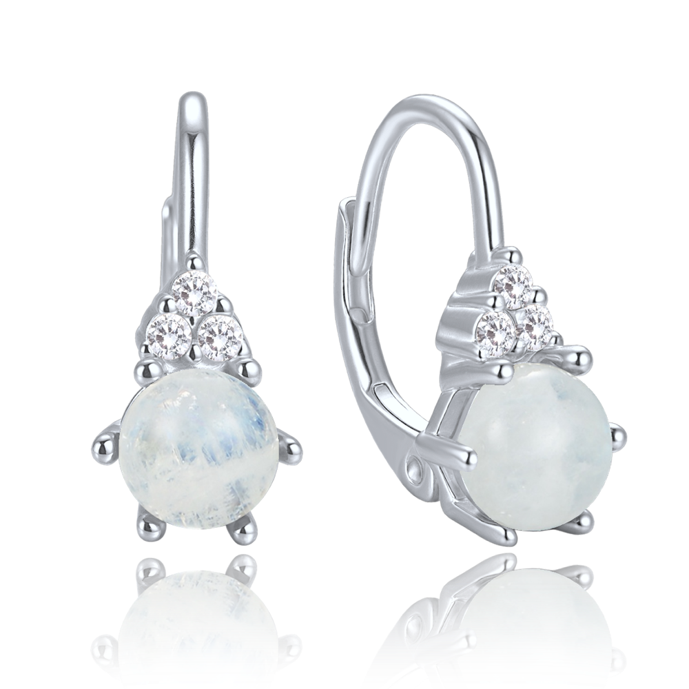 MINET Elegantní stříbrné náušnice s měsíčním kamenem a zirkony