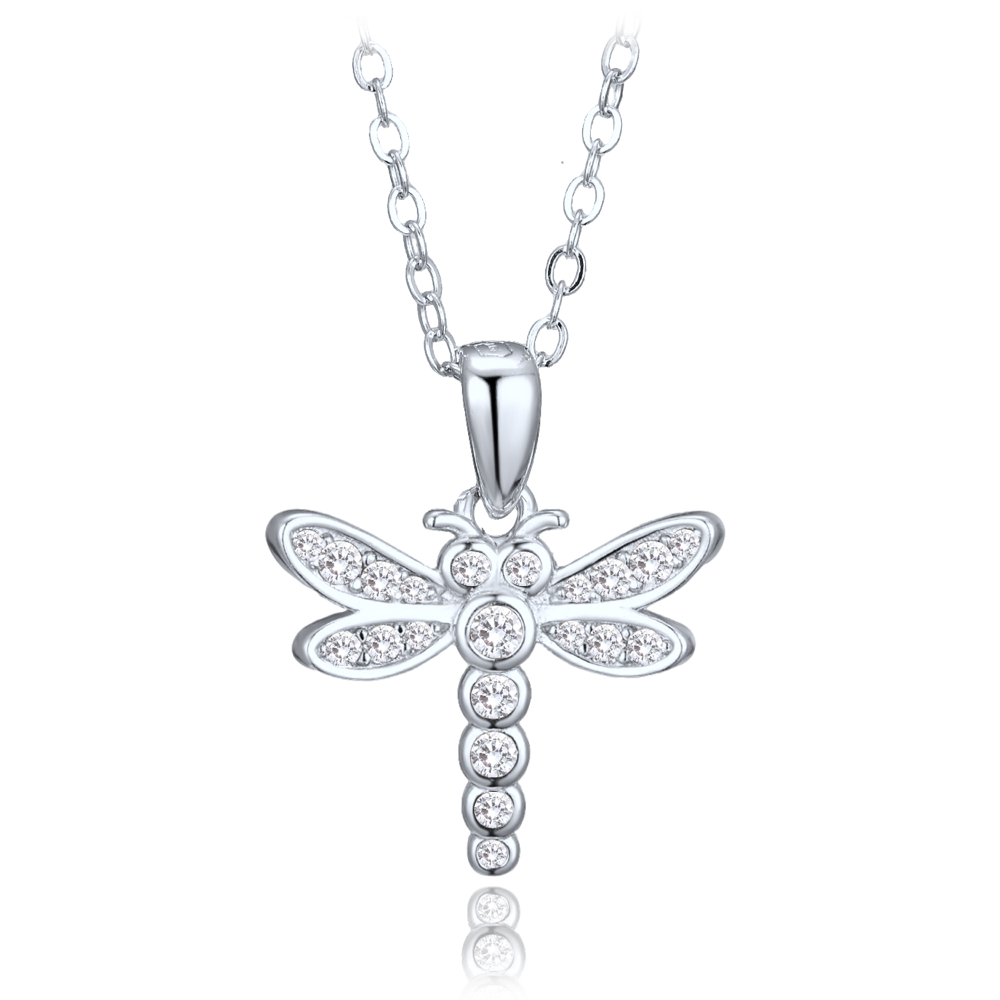 Dětský náhrdelník MINET je vyroben z pravého rhodiovaného stříbra Ag 925/1000, které si dlouho udrží svou barvu i lesk. Přívěsek má motiv vážky a zdobí ho bílé zirkony.