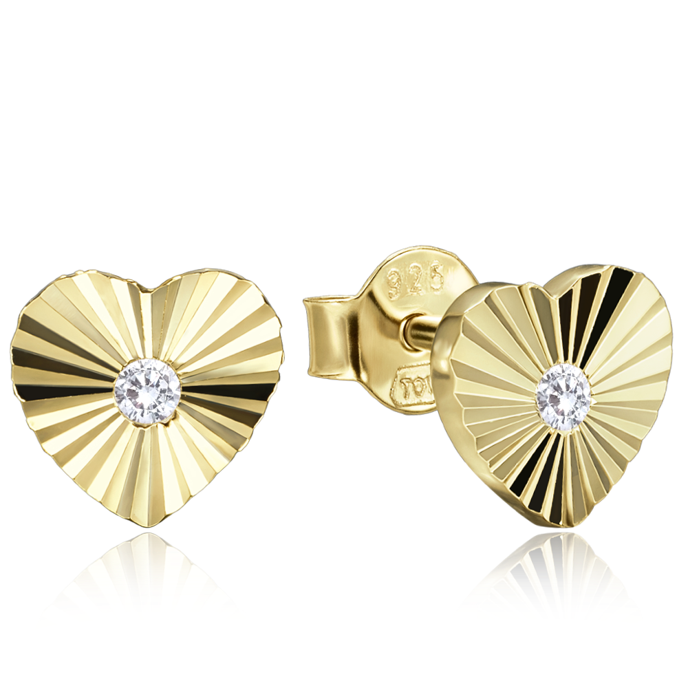 MINET Decentní pozlacené stříbrné náušnice srdíčka se zirkony