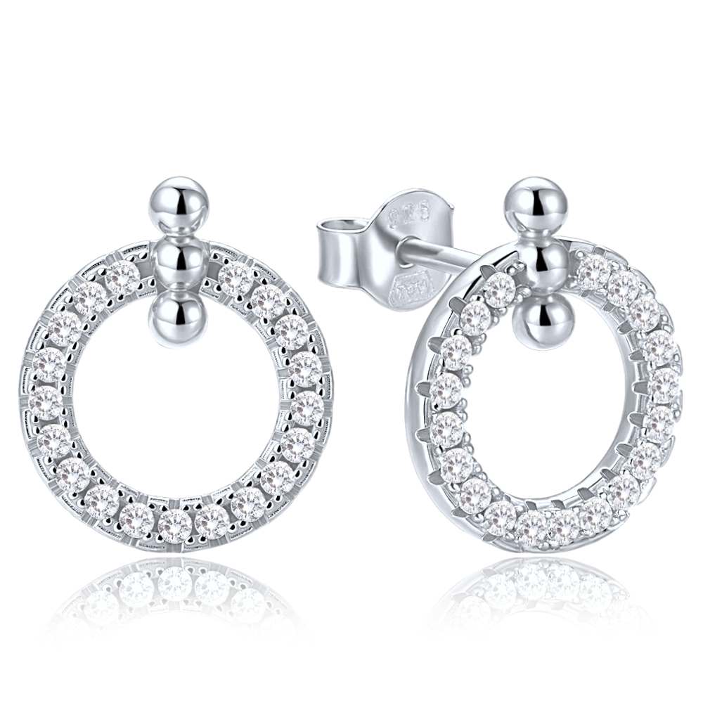 MINET Elegantní stříbrné náušnice kroužky se zirkony