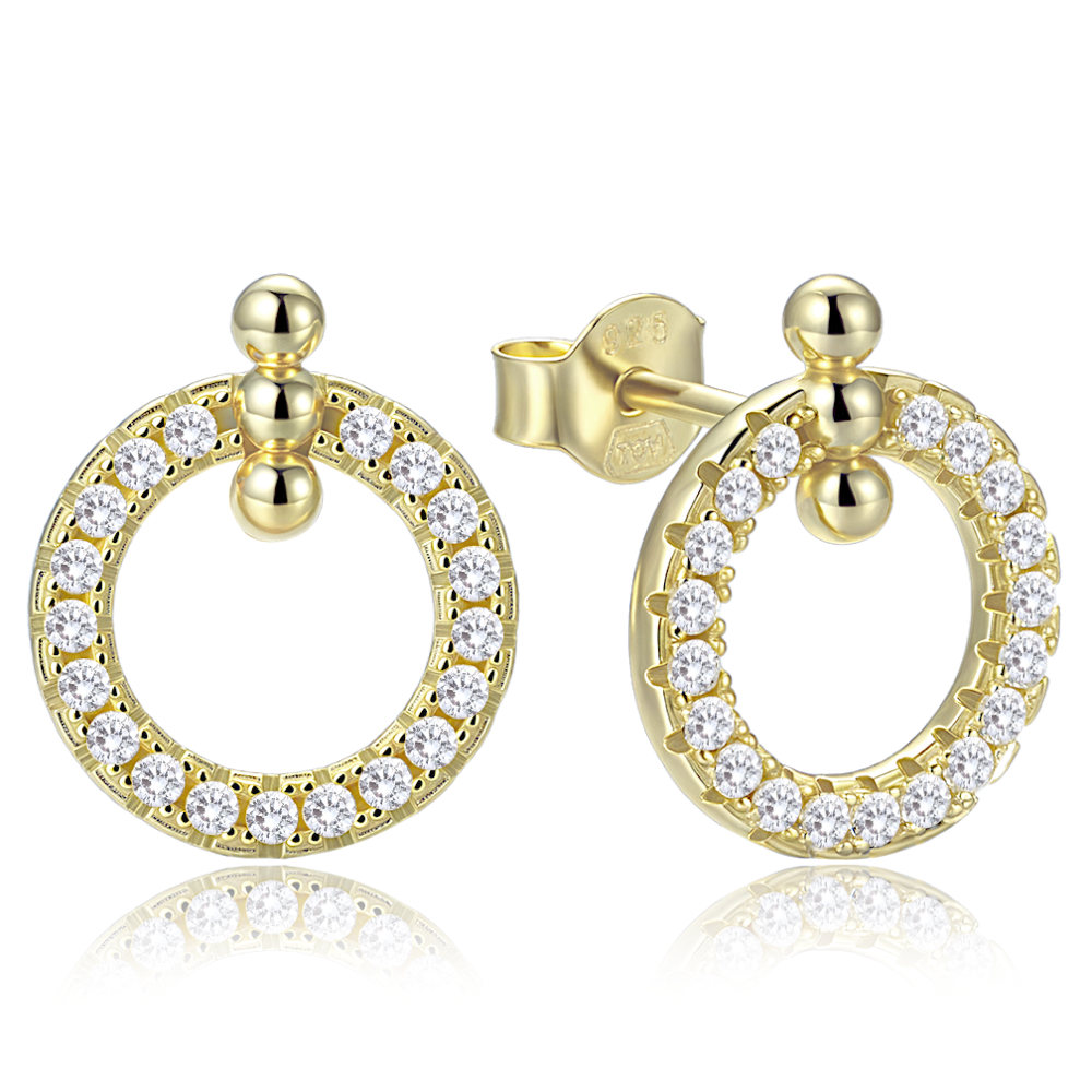 MINET Elegantní pozlacené stříbrné náušnice kroužky se zirkony
