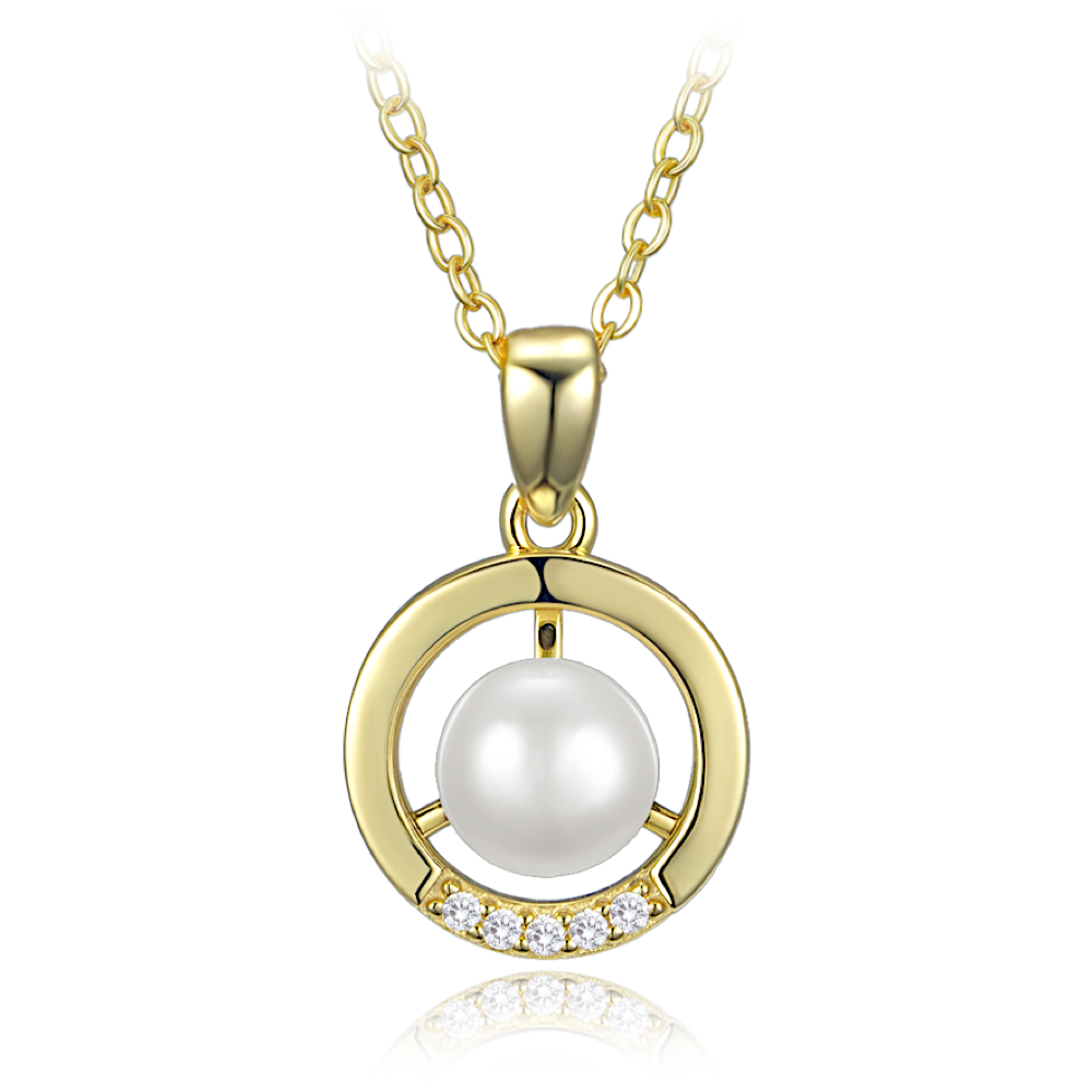 Pozlacený stříbrný náhrdelník MINET s motivem kroužku, perlou a zirkonem je vyroben ze stříbra Ag 925/1000, pokovený vrstvou zlata a chráněný e-coatingem. Elegantní vzhled je nadčasový a působí harmonicky.