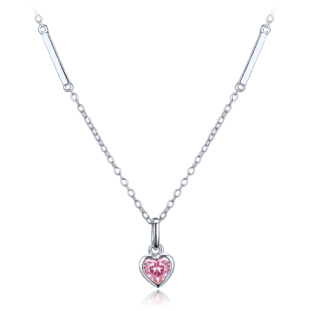 MINET Decentní stříbrný náhrdelník srdce s růžovým zirkonem