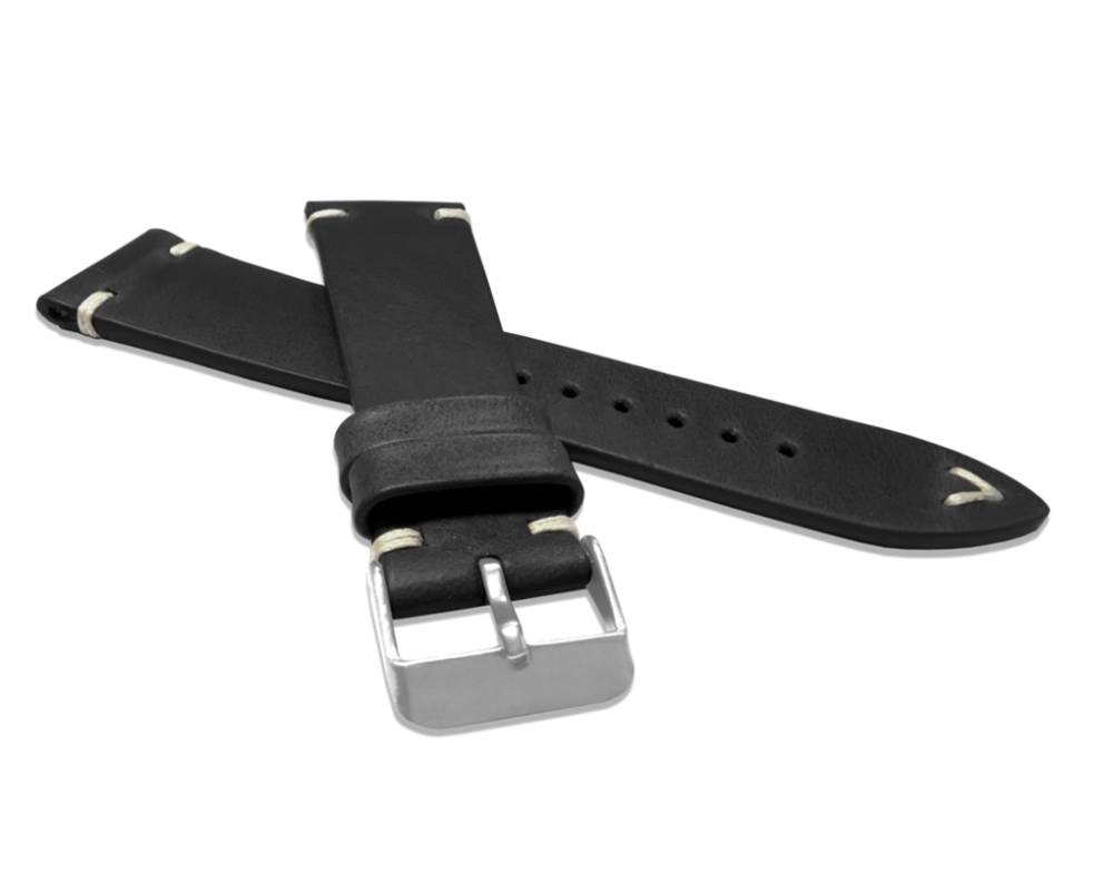 LAVVU Černý prošitý řemínek RETRO z luxusní kůže Top Grain - 20