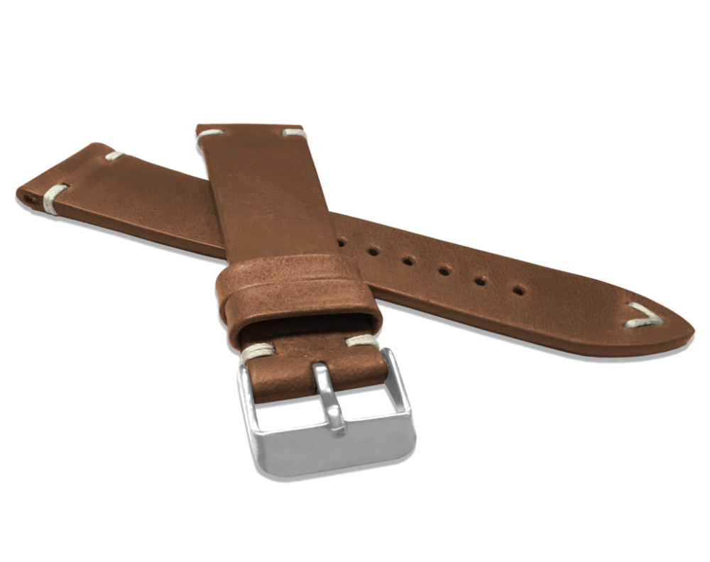 LAVVU Hnědý prošitý řemínek RETRO z luxusní kůže Top Grain - 22