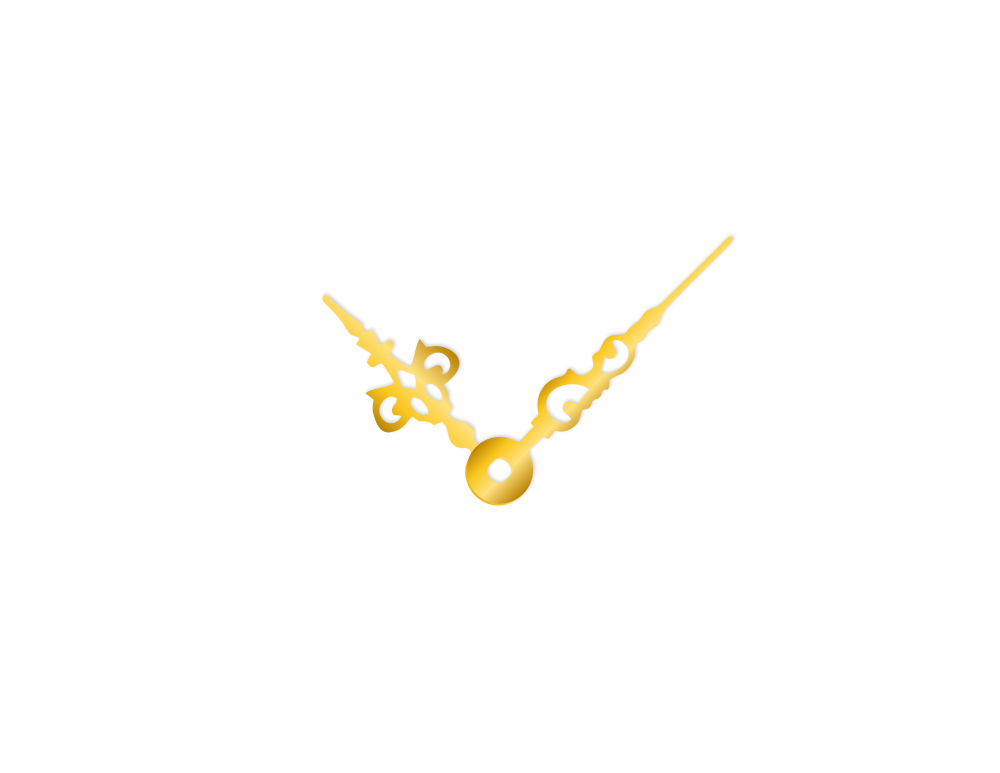 Hliníkové ručičky v lesklé zlaté barvě jsou určeny pro opravu starých nebo výrobu nových nástěnných hodin.