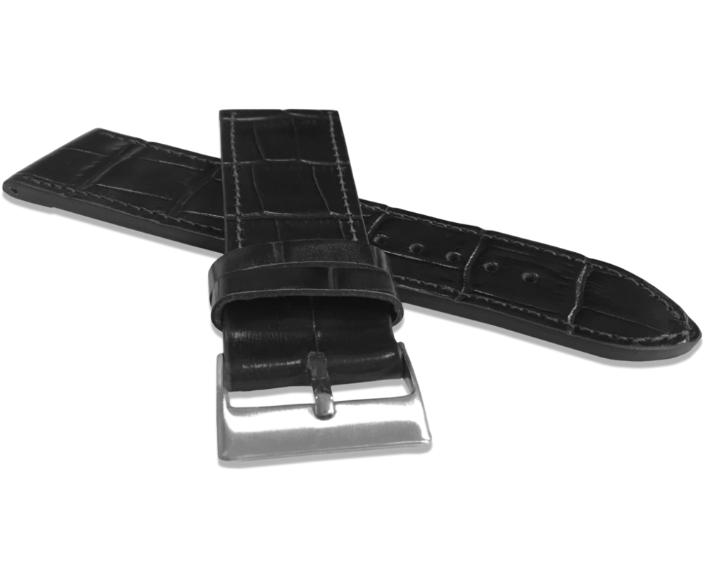 LAVVU Černý prošitý řemínek CROCO z luxusní kůže Top Grain - 24