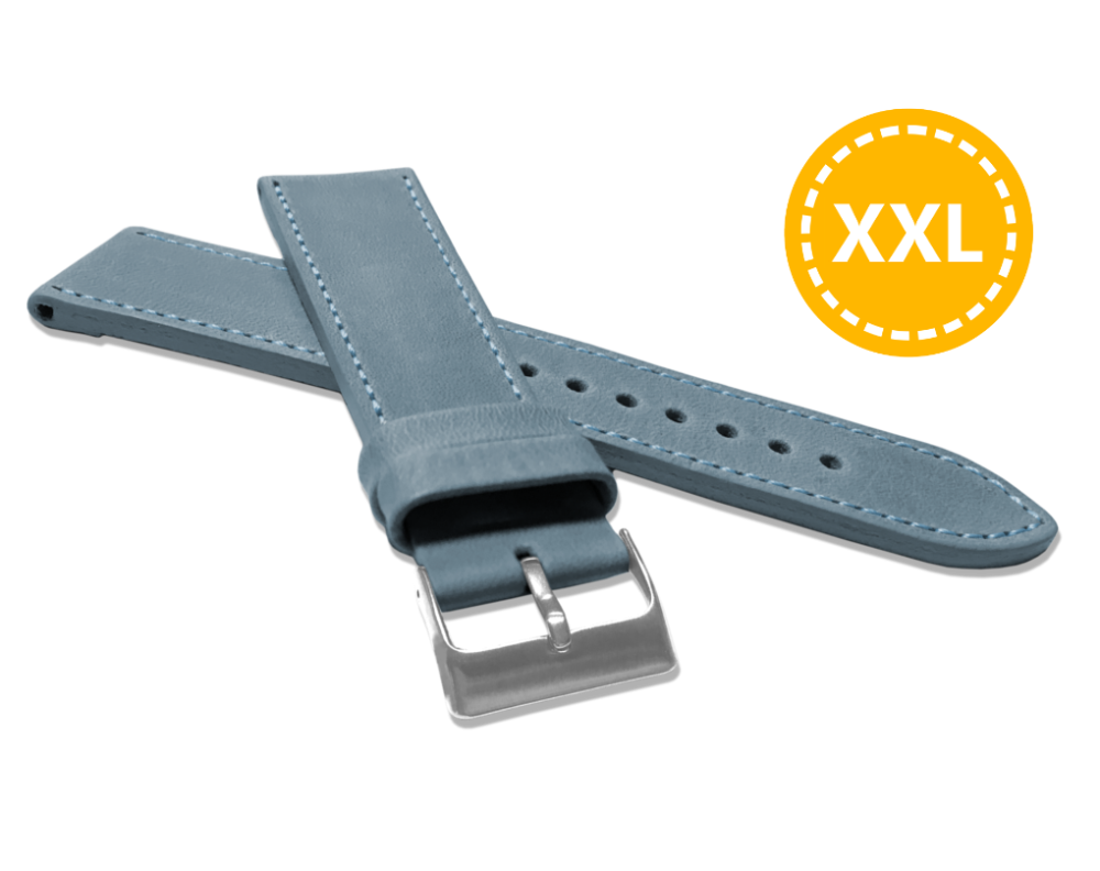 LAVVU XXL Prodloužený prošitý modrý řemínek SPORT z luxusní kůže Top Grain - 22 XXL