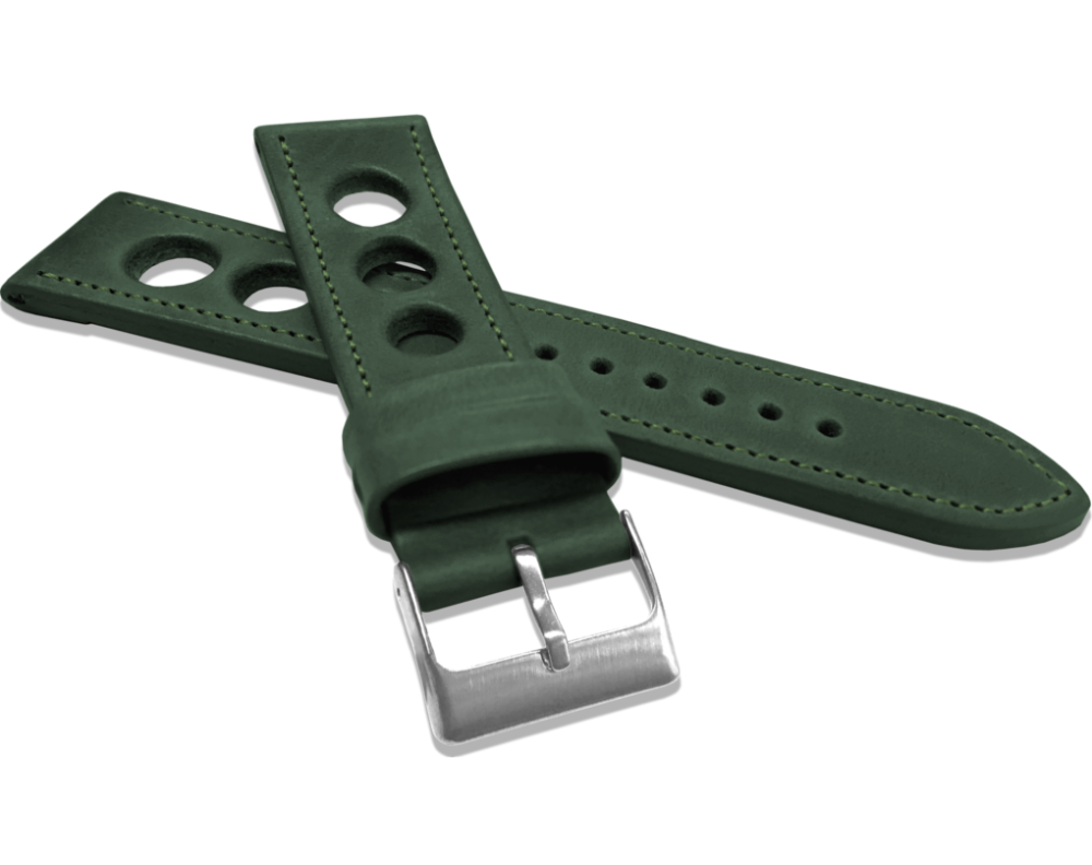 LAVVU Perforovaný zelený prošitý řemínek VINTAGE z luxusní kůže Top Grain - 22