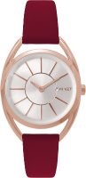 Elegantní hodinky české značky MINET se stříbrným číselníkem, moderním vínovým páskem a detaily v barvě růžového zlata. Vyměnitelný řemínek z hladké a jemné kůže. Hodinky jsou vyrobeny z hypoalergenní nerezové oceli.