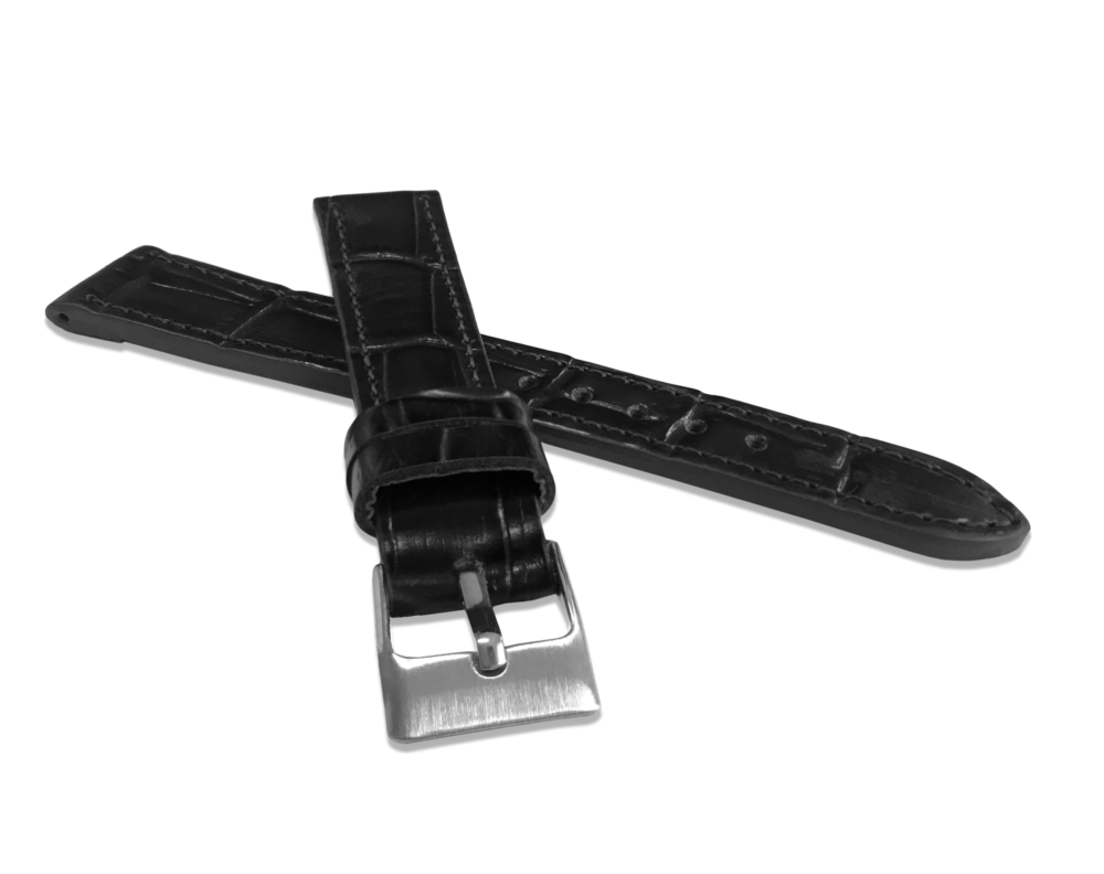 LAVVU Černý prošitý řemínek CROCO z luxusní kůže Top Grain - 12