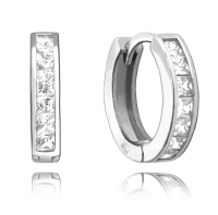 Stříbrné náušnice kroužky jsou díky praktickému zapínání a tvaru pohodlné pro každodenní nošení. Bílé zirkony se krásně třpytí a ozvláštníte jimi svůj outfit. Povrch stříbra je z rhodia, náušnice tedy neztratí svůj zářivý lesk a barvu.
