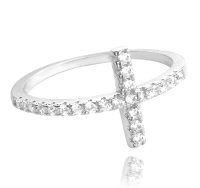 MINET Stříbrný prsten KŘÍŽEK s bílými zirkony vel. 52