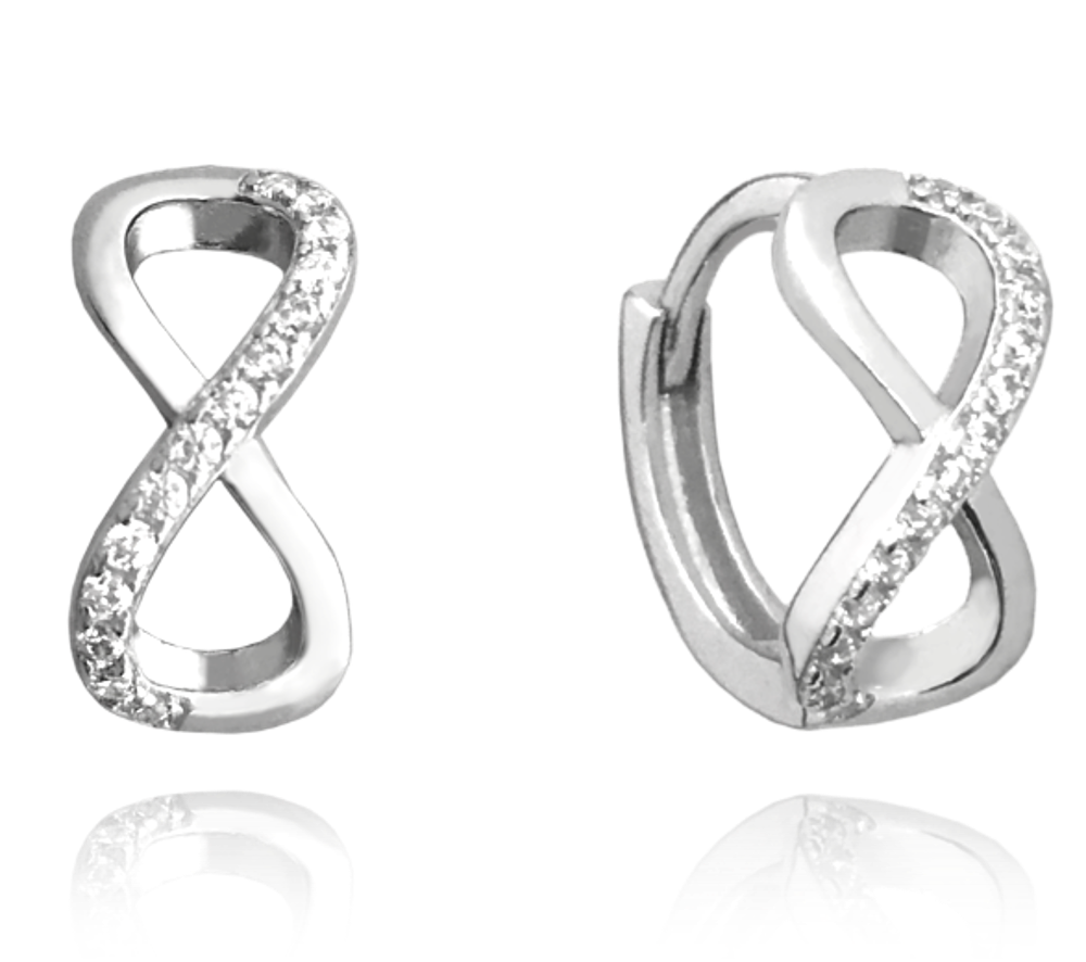 Stříbrné náušnice MINET se symboly nekonečna jsou odrazem současných trendů. Zajímavě posazené kamínky z nich udělají originální doplněk pro každodenní nošení.