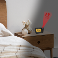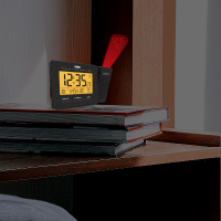 Napájení je možné pomocí baterií nebo adaptéru. Pokud zvolíte napájení přes kabel, můžete se těšit ještě z jedné skvělé funkce - nepřetržitého promítání času projektorem na stěnu nebo strop. Při použití baterií se projektor zapne po stisknutí tlačítka, a vy tak v noci nemusíte ani pootočit hlavou, abyste zjistili, jak dlouho ještě můžete spát.
